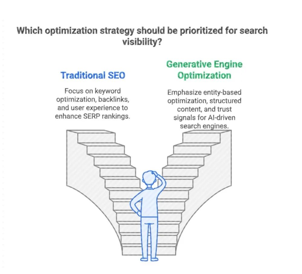 简单来说SEO依靠关键词,网站结构,外链。GEO依靠重点信息来源,结构化的内容(AI更容易读懂的内容)。这两者的有很大的差异。