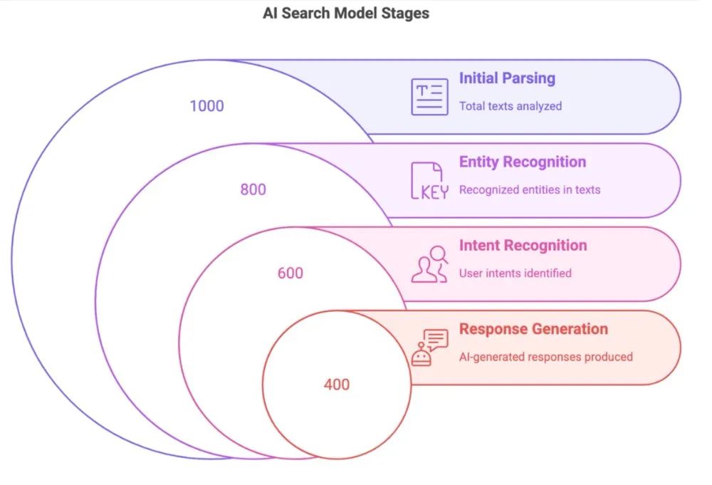 人工智能驱动的搜索模型分阶段处理信息——从解析文本开始,识别实体,识别意图,最后生成响应。了解这个过程是优化人工智能搜索引擎内容的关键。解析是 AI 系统分析和构造文本以提取含义的过程。与扫描关键字和反向链接的传统搜索引擎不同,AI 驱动的模型使用自然语言理解 (NLU) 根据上下文解释内容,而不仅仅是匹配单词。