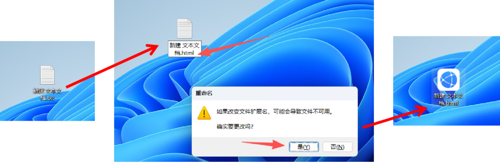 然后保存文件,我们就得到了一个写了html代码内容的txt文件,然后对这个文件的后缀重命名(.txt改为.html),就可以得到html文件。